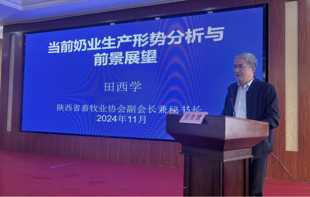 陜西省畜牧業(yè)協會副會長兼秘書長田西學作了奶業(yè)生產形勢分析與應對策略報告。