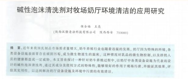 1、保全福、王亮在《奶牛》雜志發(fā)表論文《堿性泡沫清洗劑對牧場奶廳環(huán)境清潔的應(yīng)用研究》