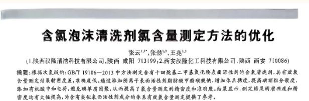 3、張?jiān)啤埐⑼趿猎凇痘す芾怼冯s志發(fā)表論文《含氯泡沫清洗劑氯含量測定方法的優(yōu)化》