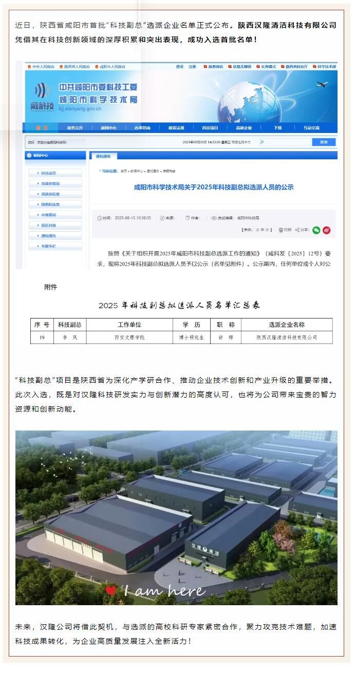 【喜報(bào)】漢隆公司成功入選陜西省咸陽(yáng)市首批“科技副總”選派企業(yè)!
